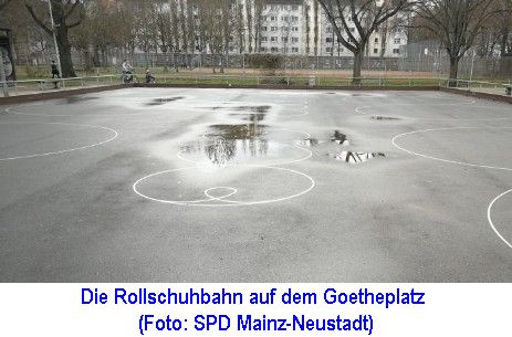 Nachdem der Ortsbeirat der Mainzer Neustadt im Februar einstimmig für den Antrag der SPD-Fraktion votierte, wurden bereits erste Informationen von der Verwaltung hinsichtlich der möglichen Beschaffenheit einer sanierten Rollschuhbahn eingeholt. Die SPD-Fraktion hatte in ihrem Antrag einen Kunststoffbelag angeregt, da sich hierdurch die Bedingungen zum Rollkunstlaufen nochmals verbessern lassen.