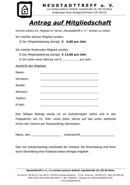 Der Neustadttreff e.V. ist registriert beim Amtsgericht Mainz unter VR 40112 und arbeitet ehrenamtlich.