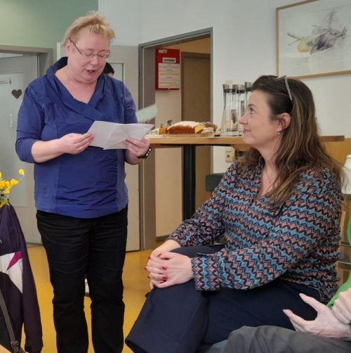 Es gab viele Blumen und sehr persönliche Worte. Auch die Augen wurden bei vielen feucht. Ein Wiedersehen ist hoffentlich vorprogrammiert. Neustadt im Netz sagt Danke dafür, dass es immer ein offenes Ohr gab und wir uns im Caritaszentrum Delbrêl willkommen fühlen durften. Denn wir gehören ja irgendwie zum Haus dazu und füllen es mit Leben. Wir sind auf jeden Fall gespannt, wie es nun weitergeht…