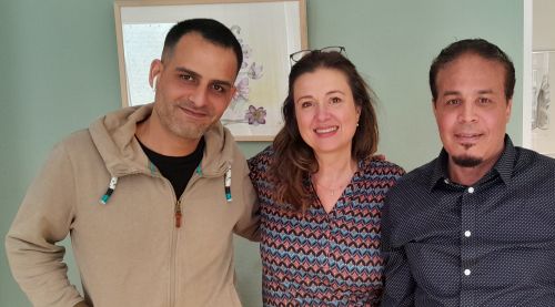 Umrahmt von Mohamad Hammal Sabouni (l.) und Boujemaa Mouatassim: Diana Rizkalla