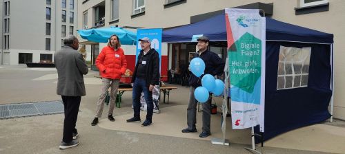 Zusätzlich bot ein Markt der Möglichkeiten Austausch mit Akteur:innen wie den Digital-Botschafter:innen und den ePA-Coaches sowie Materialien der Verbraucherzentrale.