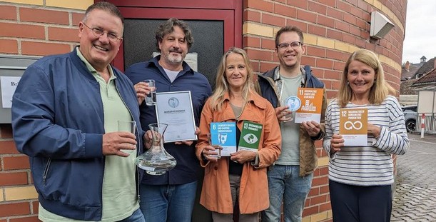 Die Nachhaltigkeitsinitiative Bretzenheim setzt sich bereits seit Jahren für die Nutzung von Leitungswasser ein. Auf ihre Initiative hin wurde der Stadtteil 2021 Teil des bundesweiten Netzwerks der Wasser-Quartiere. „Unser Ziel ist es, die Vorteile von Leitungswasser sichtbarer zu machen und kostenlose Zugänge zu fördern, wie etwa bei den Refill-Stationen, von denen es in Bretzenheim schon einige gibt. Leitungswasser ist eine einfache, aber wirkungsvolle Stellschraube für mehr Nachhaltigkeit im Alltag“, sagt Andrea Oppacher-Friedrich von der NiB. Ein großer Erfolg war die Einweihung eines öffentlichen Trinkwasserbrunnens im Bretzenheimer Ortskern im März 2025 – ein Projekt, das die Initiative über mehrere Jahre vorangetrieben hatte. Mit der nun ausgezeichneten Ortsverwaltung geht Bretzenheim einen weiteren Schritt auf dem Weg zu mehr Nachhaltigkeit im Alltag.