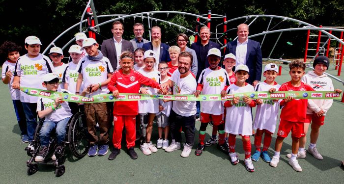 Am 10. Juni 2025 haben die Projektpartner der Initiative „Stück zum Glück“ gemeinsam mit dem FSV Mainz 05 einen inklusiven Spielplatz in unmittelbarer Nähe des Mainzer Fußballstadions eröffnet. „Stück zum Glück“ ist eine gemeinsame Initiative von Procter & Gamble (P&G), REWE und der Aktion Mensch, mit der die Partnerunternehmen den Bau inklusiver Spielplätze in ganz Deutschland vorantreiben – für mehr Vielfalt auf deutschen Spielplätzen. Vor Ort waren neben Vertreter:innen der Partnerunternehmen von „Stück zum Glück“ und Mainz 05 auch Para-Leichtathletik-Weltmeister und Botschafter der Initiative, Mathias Mester sowie Oberbürgermeister Nino Haase. Über 70 Kinder mit und ohne Behinderung hatten die Gelegenheit, den neu errichteten Spielplatz als Erste spielerisch zu entdecken.