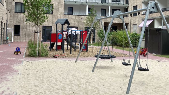 Außenbereich der eu eröffneten Kindertagesstätte Rheinallee am Zollhafen (Foto: Landeshauptstadt Mainz)