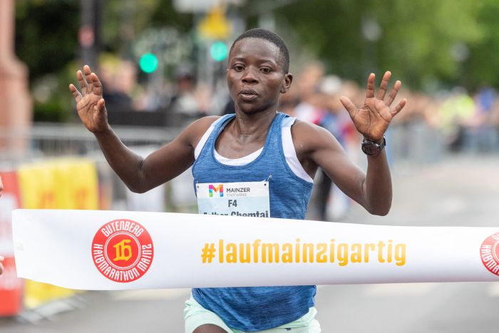 Bei guten Wetterbedingungen war Esther Chemtai letztlich die stärkste Frau im Feld. Rund zwei Kilometer vor dem Ziel setzte sie sich von ihren Konkurrentinnen ab und spurtete solo ins Ziel. „Dies war erst mein zweiter Halbmarathon und meine erste Zeit unter 70 Minuten“, jubelte die 31-jährige Mutter zweier Kinder, die sich schon darauf freute, ihrer Familie von ihrem tollen Mainzer Lauftag zu erzählen.